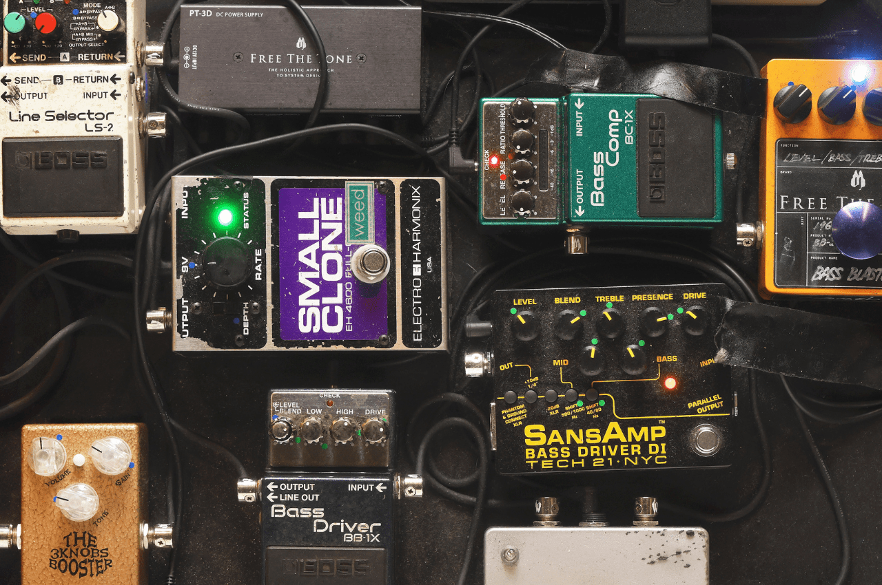 ボードの核となっているのが、Free The Tone製BASS BLASTER BB-2(②)。