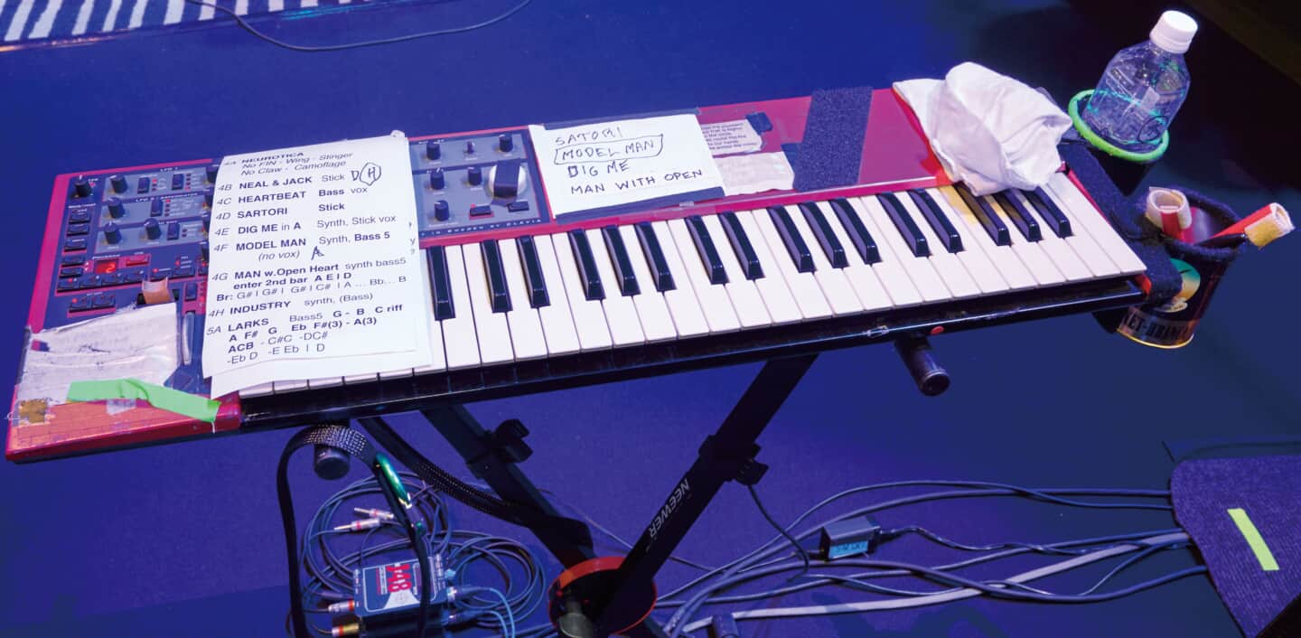 80年代から使用している初期のNord Lead。本公演では「Industry」「Dig Me」「Thela Hun Ginjeet」などでシンセ・ベースとして活躍した。右手側のカップには「Sleepless」での印象的なベース・リフを生む“ファンク・フィンガーズ”奏法のために、人差指と中指に装着する専用スティックが収められているのが確認できる。