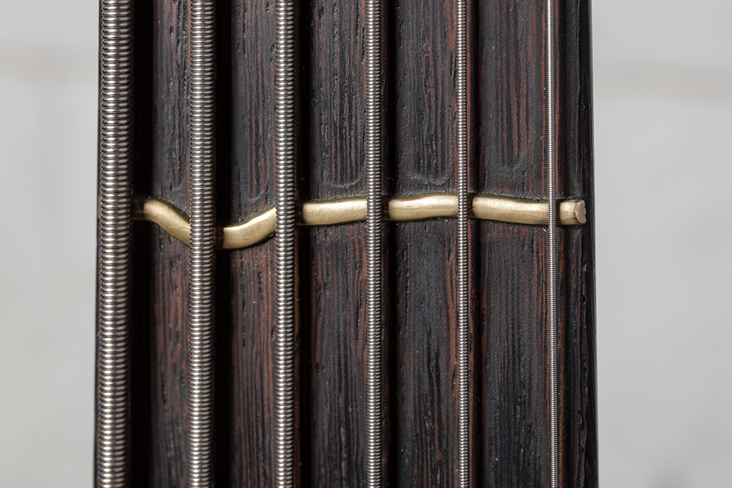スウェーデンのトゥルー・テンパラメント社が開発した、各弦で正確なピッチが得られるように湾曲したフレット・システム。コード弾きを多用するヘンリックならではのこだわりだ。