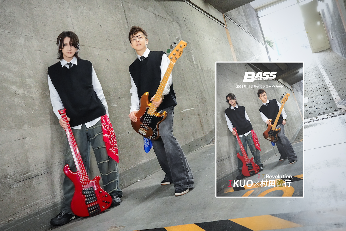 2025年に結成15年周年を迎えた、IKUOと村田隆行によるツイン・ベース・デュオI.T.Revolution。この度、結成15周年を記念した新作EP『BassRe:Evolution』が、ベース・マガジン11月号本誌購入者限定のダウンロード・カード形式にてリリースされた。(電子版ではダウンロード・カードは付録していません)