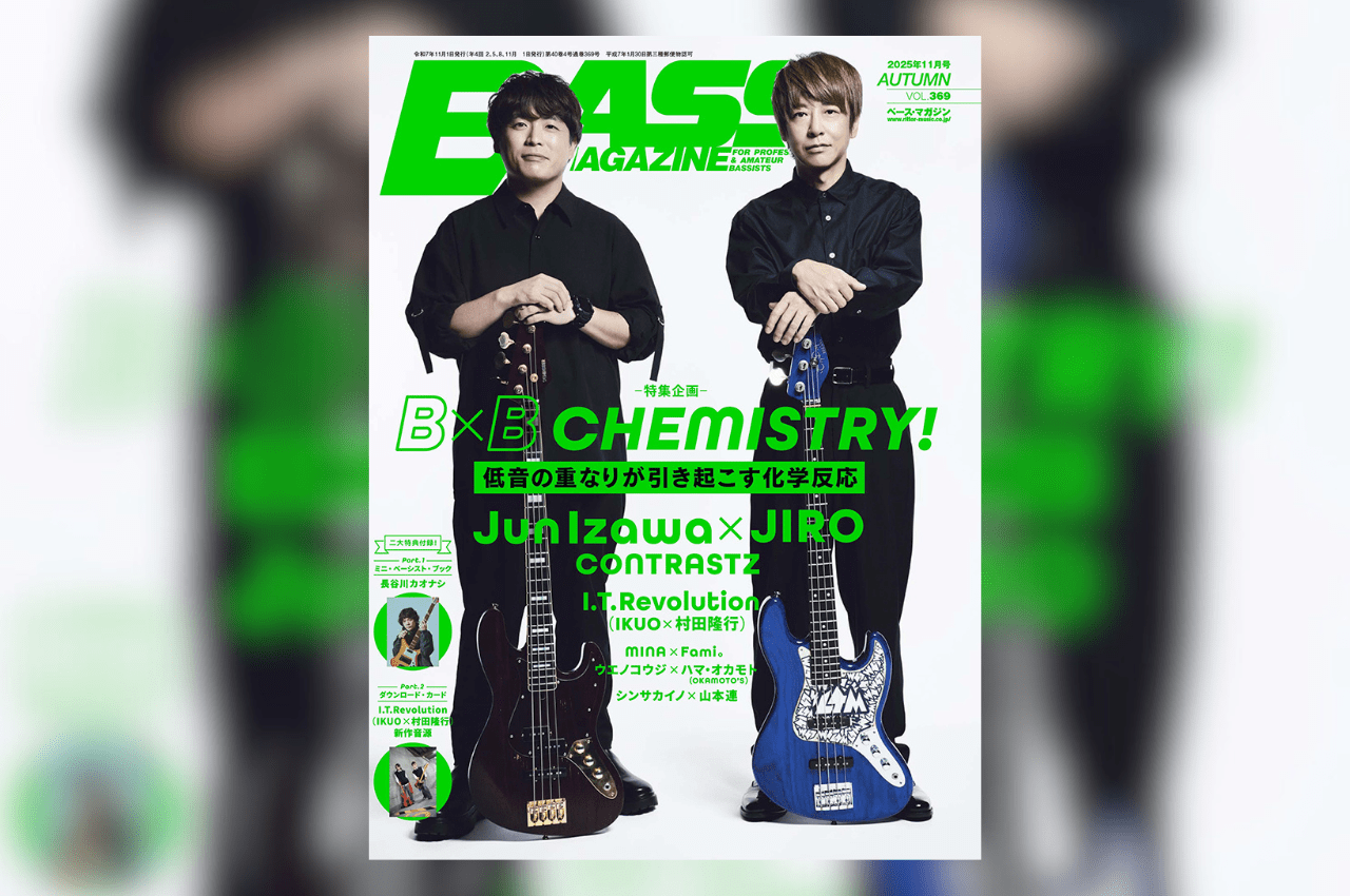 10月18日(土)発売の『ベース・マガジン2025年11月号(Autumn)』は、巻頭特集「B×B CHEMISTRY! 低音の重なりが引き起こす化学反応」を掲げ、ツイン・ベースやベーシスト同士の対談、ベースの多重演奏など、多角的に“ベース✕ベース”、“低音✕低音”というテーマを掘り下げます!