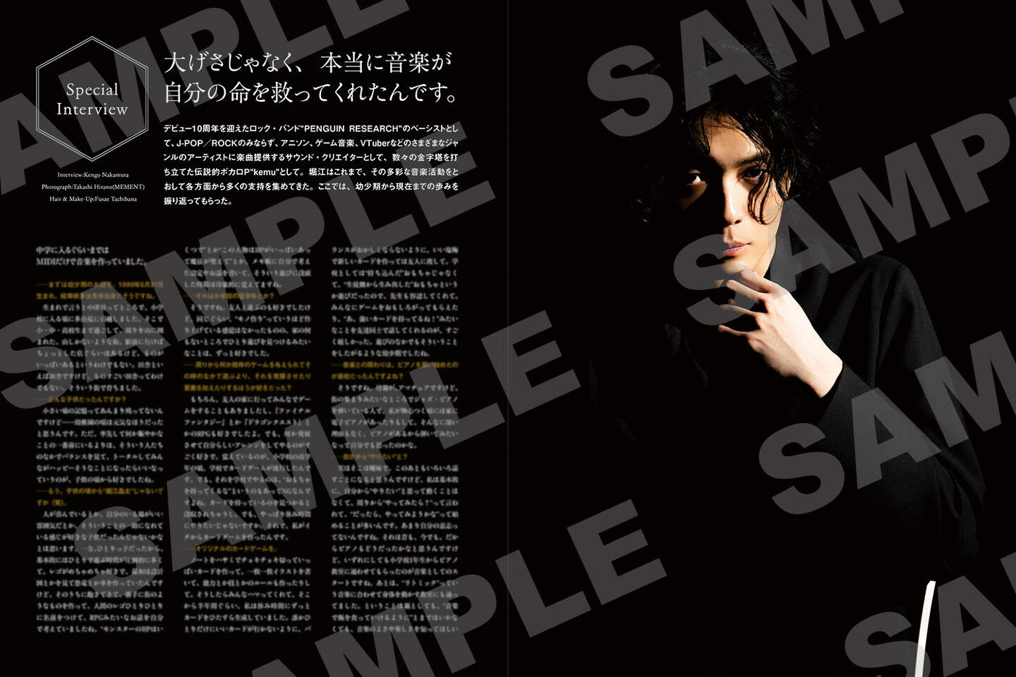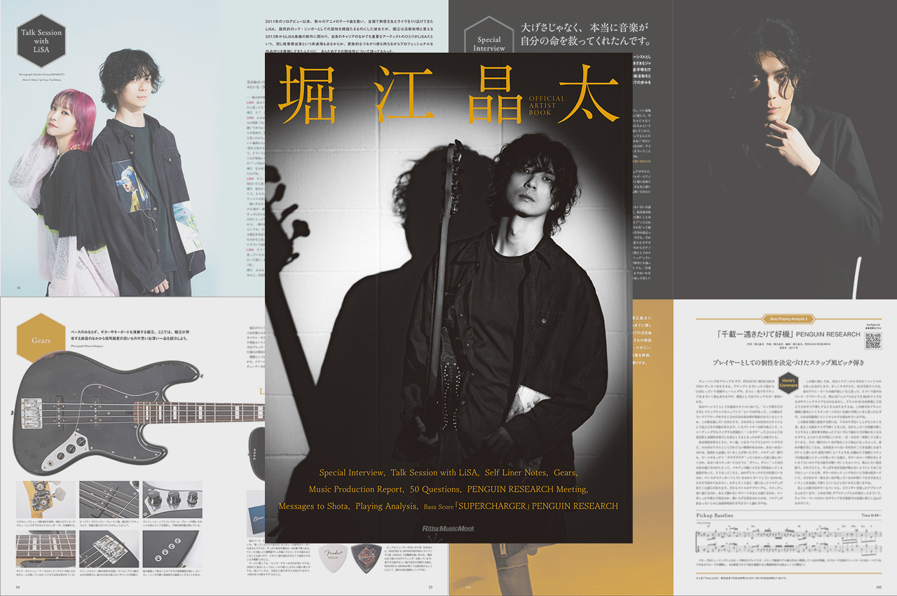 さらに、盟友とも言えるロック・シンガーLiSAとの対談、堀江以外のPENGUIN RESEARCHメンバーによる座談会、関わりの深いアーティストたちからのメッセージ、素顔の堀江が垣間見えるQ&Aコーナーなども収録し、さまざまな視点から見た堀江晶太像を明らかにしている。