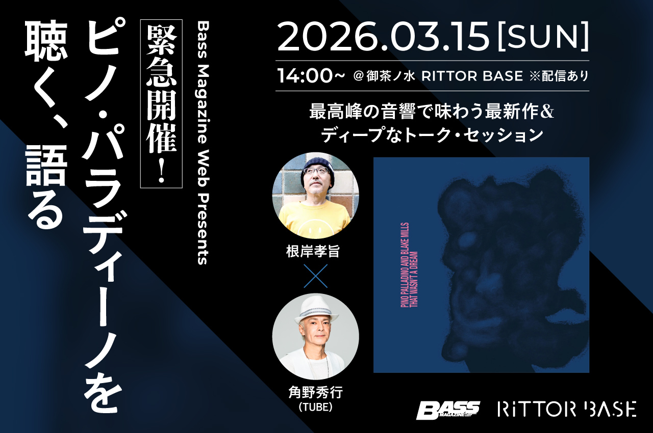 2026年3月6日〜9日にブルーノート東京で公演を行なった、世界最高峰のベーシストのひとり、ピノ・パラディーノ。ピノ・パラディーノ+ブレイク・ミルズ(g) featuring クリス・デイヴ(d)&サム・ゲンデル(sax)という豪華メンバーでの来日公演は、大きな話題を呼んだ。
