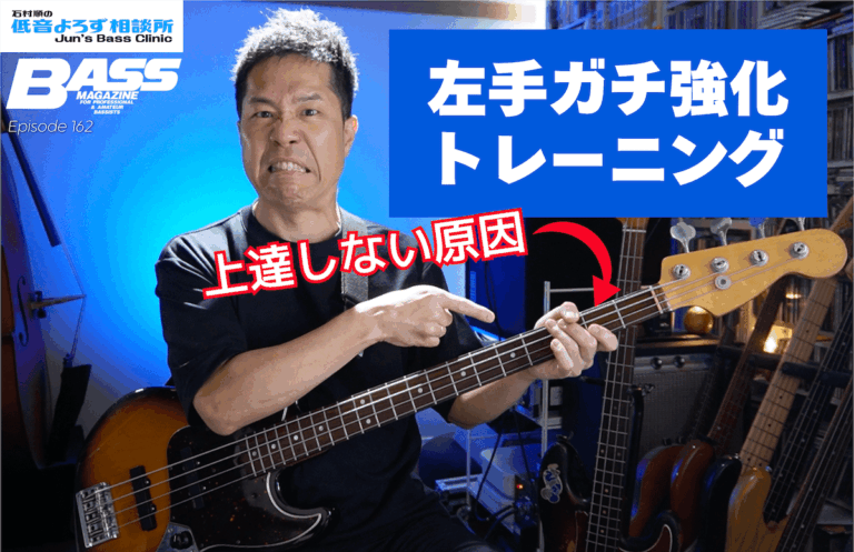 “約3分”でベース上達にまつわるさまざまなトピックを解説するYouTube動画連動の連載『石村順の低音よろず相談所 〜Jun’s Bass Clinic〜』。第162回は、「左手を強化するための基礎トレーニング」を紹介し … 続きを読む 左手だけで練習してみよう(“左手ガチ鍛錬”第1弾)【石村順の低音よろず相談所】第162回