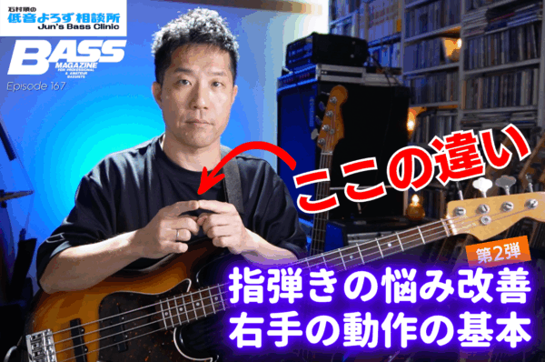 “約3分”でベース上達にまつわるさまざまなトピックを解説するYouTube動画連動の連載『石村順の低音よろず相談所 〜Jun’s Bass Clinic〜』。今回は「指弾き“右手動作の基本”」第2弾です! 第1弾はこちら … 続きを読む 指弾き“右手動作の基本”を徹底解説!②【石村順の低音よろず相談所】第167回