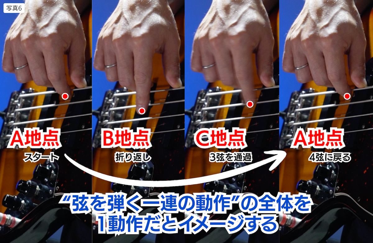 という“弦を弾く一連の動作”の全体を、1動作だとイメージするのです。