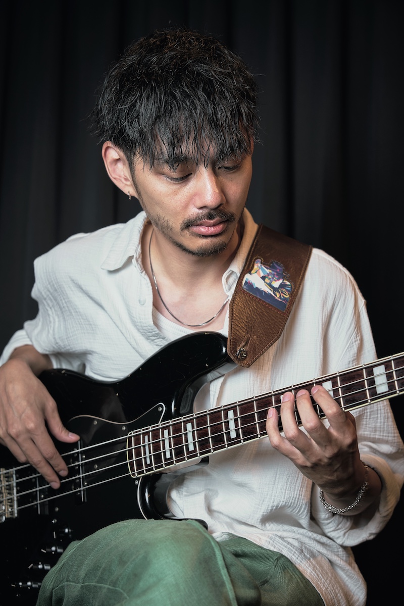 ジャムりながら作っていったので、概ね自分のアイディアかもしれないです。と言っても、コードが多いので必然的にああいうプレイになっていくというか。練習だと思って弾いていたら、“もうこれで良くね?”ってそのテイクが採用されたので、ワンテイクだった気がします。DonGroshの5弦ジャズ・ベースを使いました。