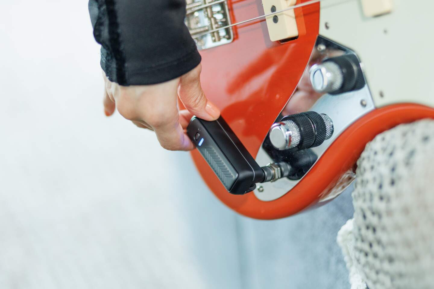 トランスミッターとのセットで接続も簡単。低レイテンシー設計により音切れもなく、快適なプレイが可能。ヘッドフォン、トランスミッターともに付属のUSB-Cケーブルで充電して使用する。
