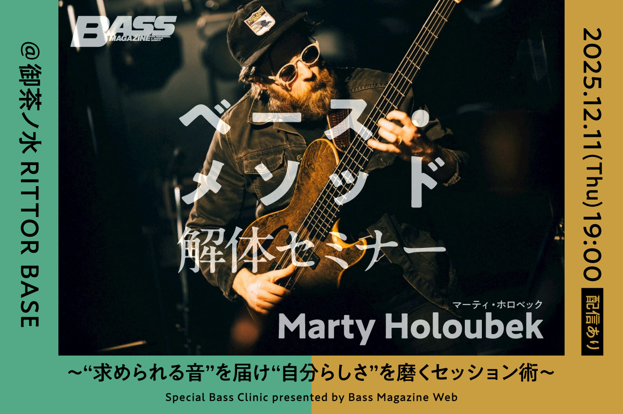 12月11日(木)に開催される「ベース・メソッド解体セミナー Guest:マーティ・ホロベック」のチケットについて、ベース・マガジンWEBサブスク会員の皆さまに、一般発売に先がけてご案内いたします。